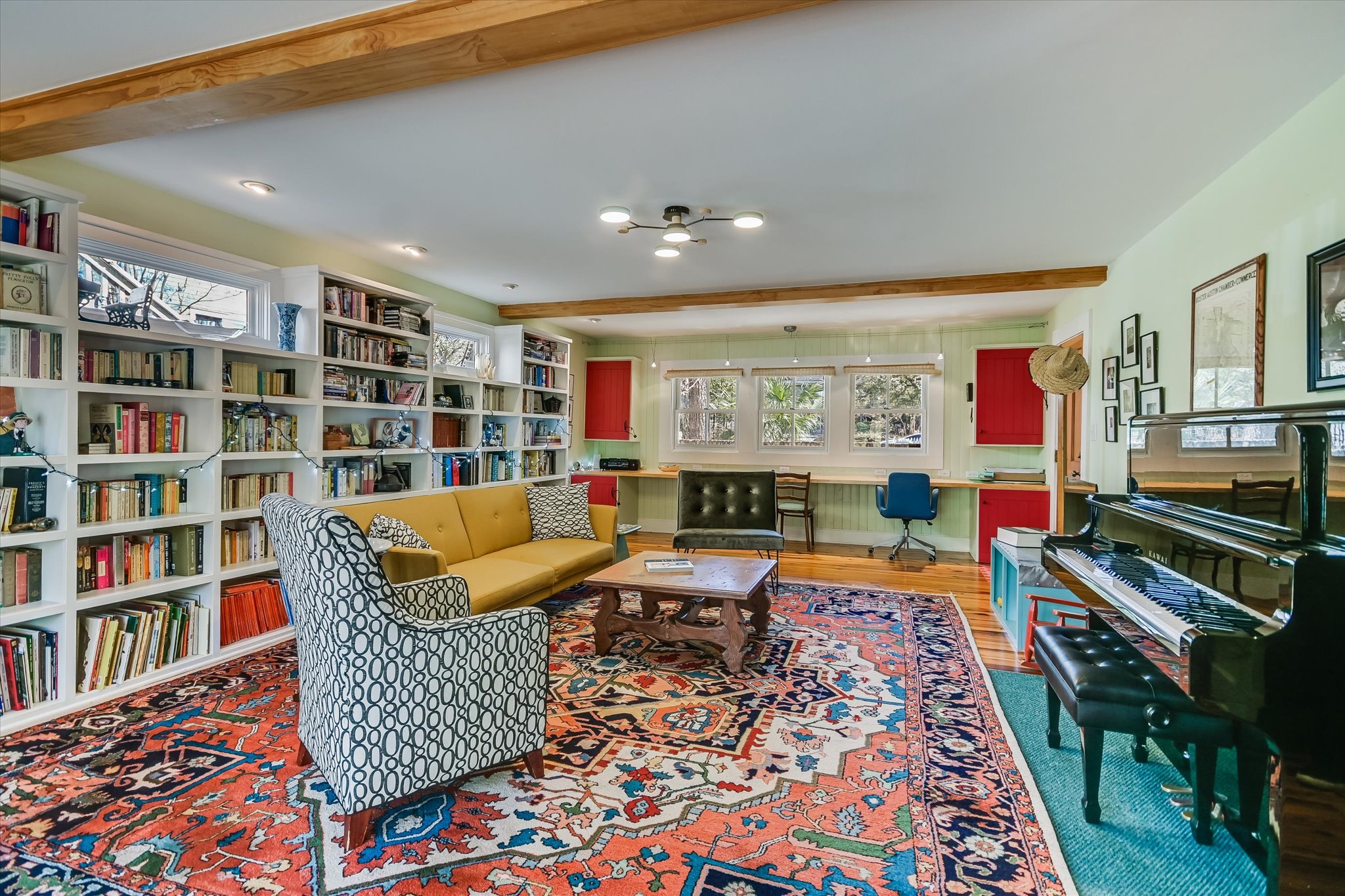 A romantic home with character and charm, the floorplan offers tradition with flexibility. Open entertaining areas are all located on the main floor along with primary suite, secondary bedroom and bath. The large sun-filled primary opens to the porch, and includes sitting area with window seating as well as a recently remodeled en suite bath with soaking tub and dual vanities. Upstairs from the private library (second living) is the large third bedroom that can act as full studio suite with full bath and kitchen or versatile space for visitors, a home office, or rental income. Combining timeless architecture with a peaceful lot (which hosted a romantic outdoor wedding a few months ago) this home is a rare opportunity to own a piece of Austin’s history on one of its most historically significant streets.