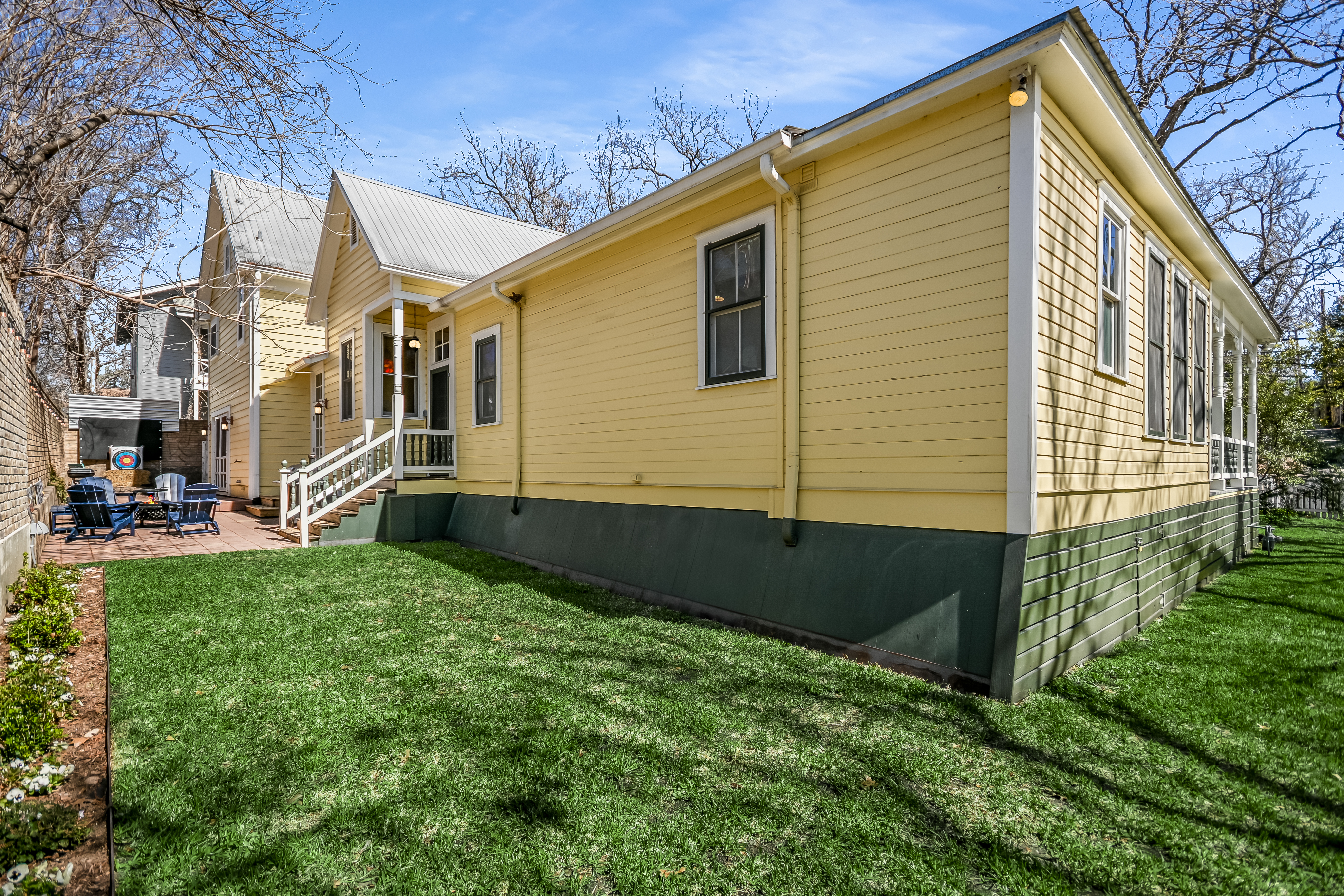 This vibrant lot supports a diverse urban biology. Usually secretive about her nest, the resident mourning dove has returned for a third year to raise her babies in view of the kitchen window. A cardinal pair has set up a nest in the front yard and are often seen at the bird feeder, where they must compete with the squirrels. On a single day in March of last year, a bird app recorded the songs of the Northern Mockingbird, Eastern Phoebe, Carolina Wren, Red-Winged Blackbird, Northern Cardinal, Blue Jay, American Robin, and White-winged Dove. In Dec, the visitors included a Red-bellied Woodpecker, Black-crested Titmouse, Yellow-rumped Warbler, and Orange-Crowned Warbler—all heard or sighted from the front porch. A bank of perennial milkweed plants in the side kitchen garden hosts migrating monarch butterflies and the occasional hummingbird. Not to forget the reptiles, the family of green anole lizards bring their lime-colored bodies with red throats to warm on the porch. Electra the cat has also found joy in the beams of sunlight whether inside the home or on the porch. The natural habitat is likely what you would have found in 1893 with pecan trees and wildlife, all surrounded by a white picket fence.